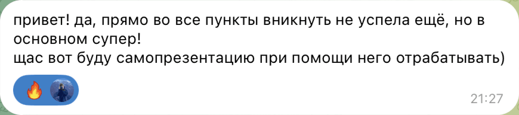 сильно выделяешься на фоне остальных откликов. знаешь,