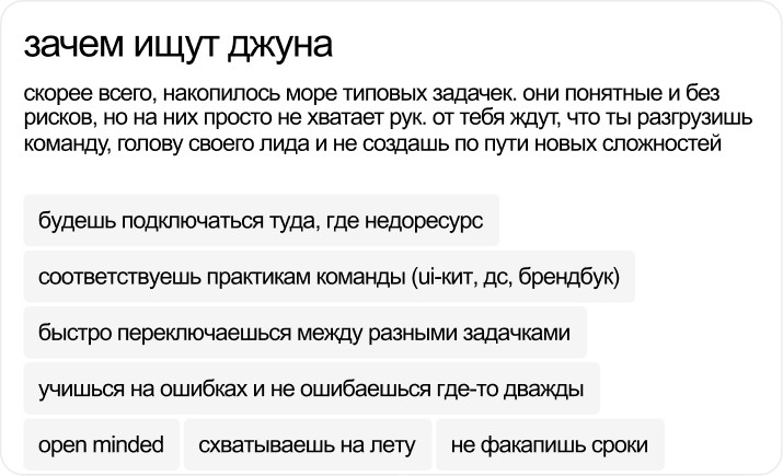 стало: говоришь на одном языке с нанимающим — можешь показать свои навыки и зацепить, даже без работ или еще без опыта в команде